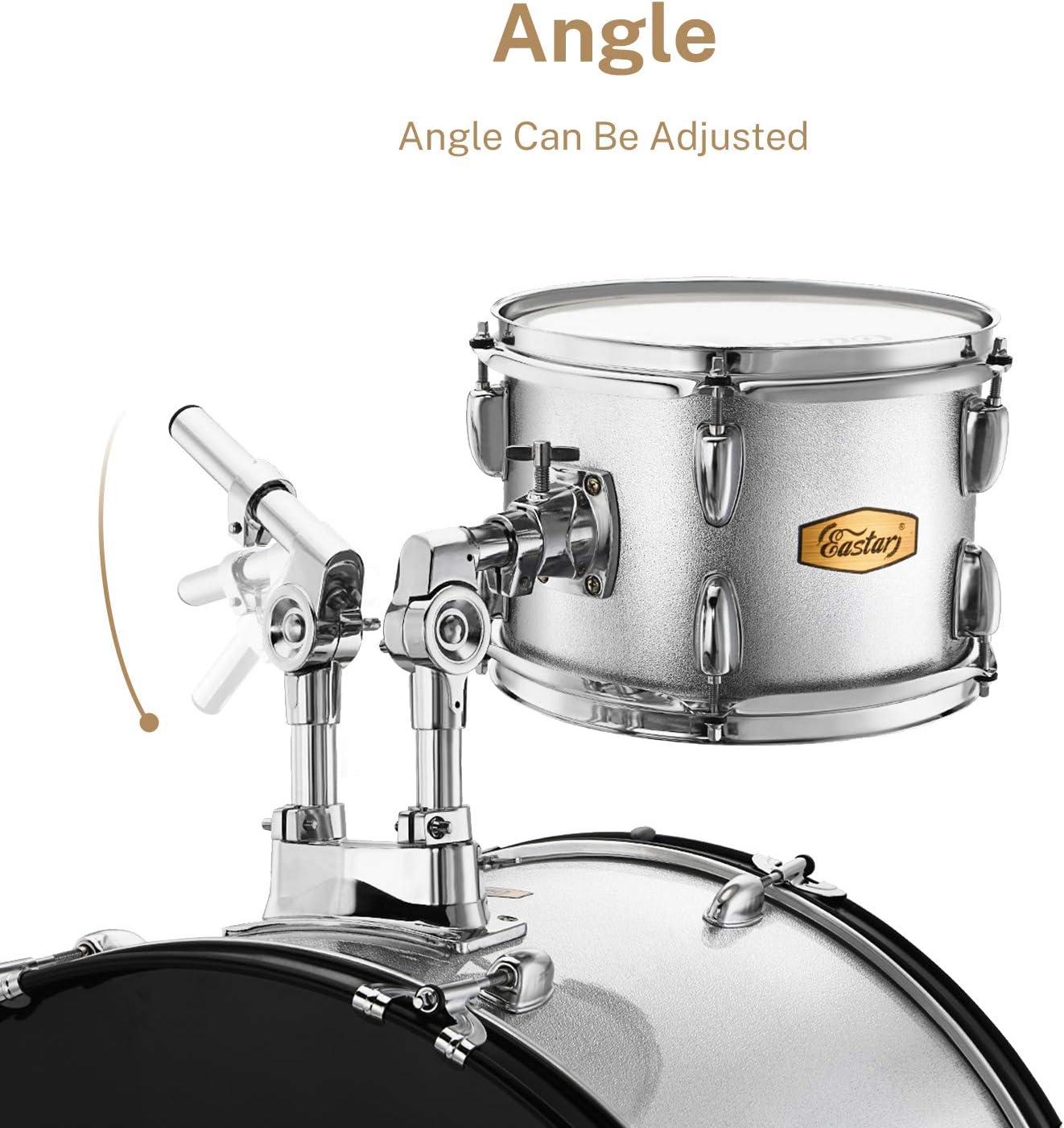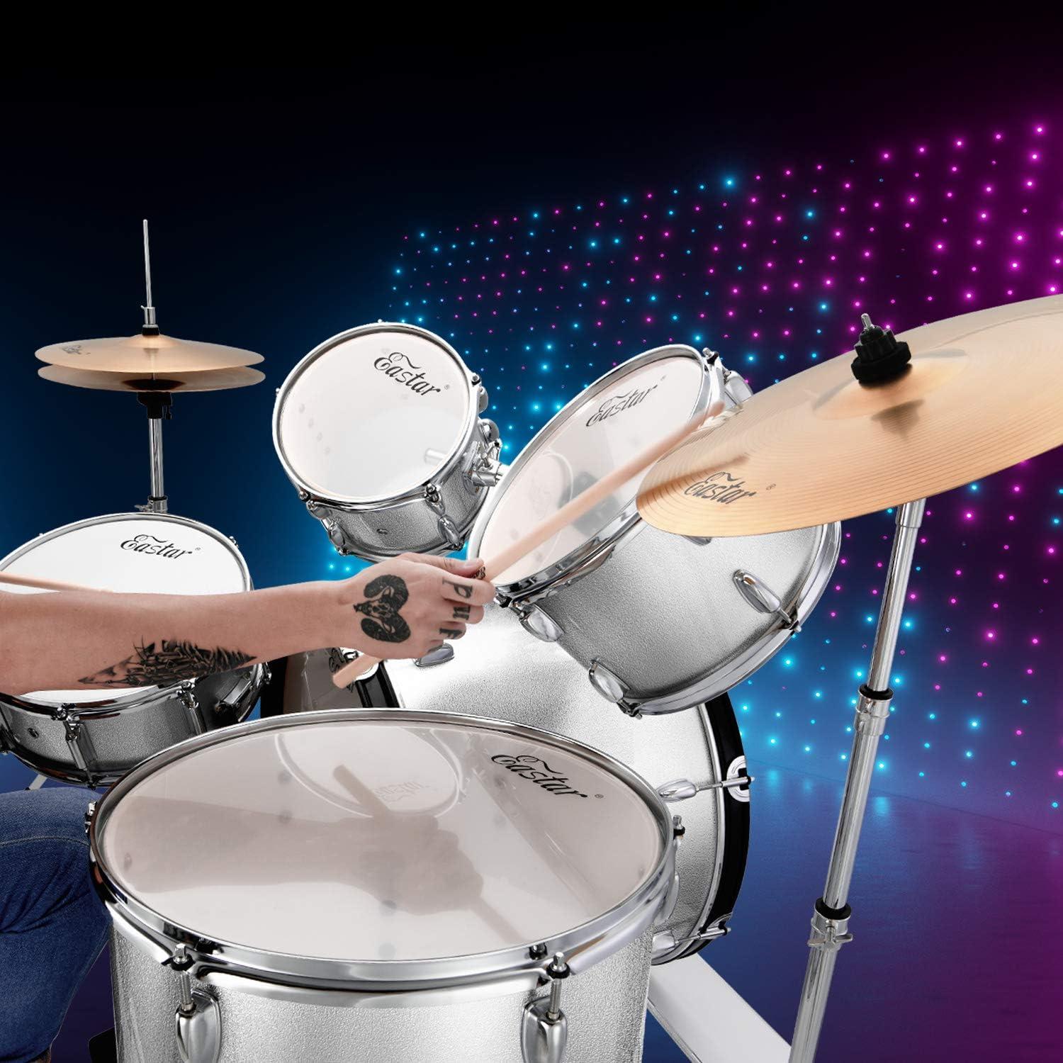Drum Set Eastar 22 inch for Adults, 5 Piece Full Size Drum Kit Junior Beginner with Pedal Cymbals Stands Stool and Sticks, Metallic Silver