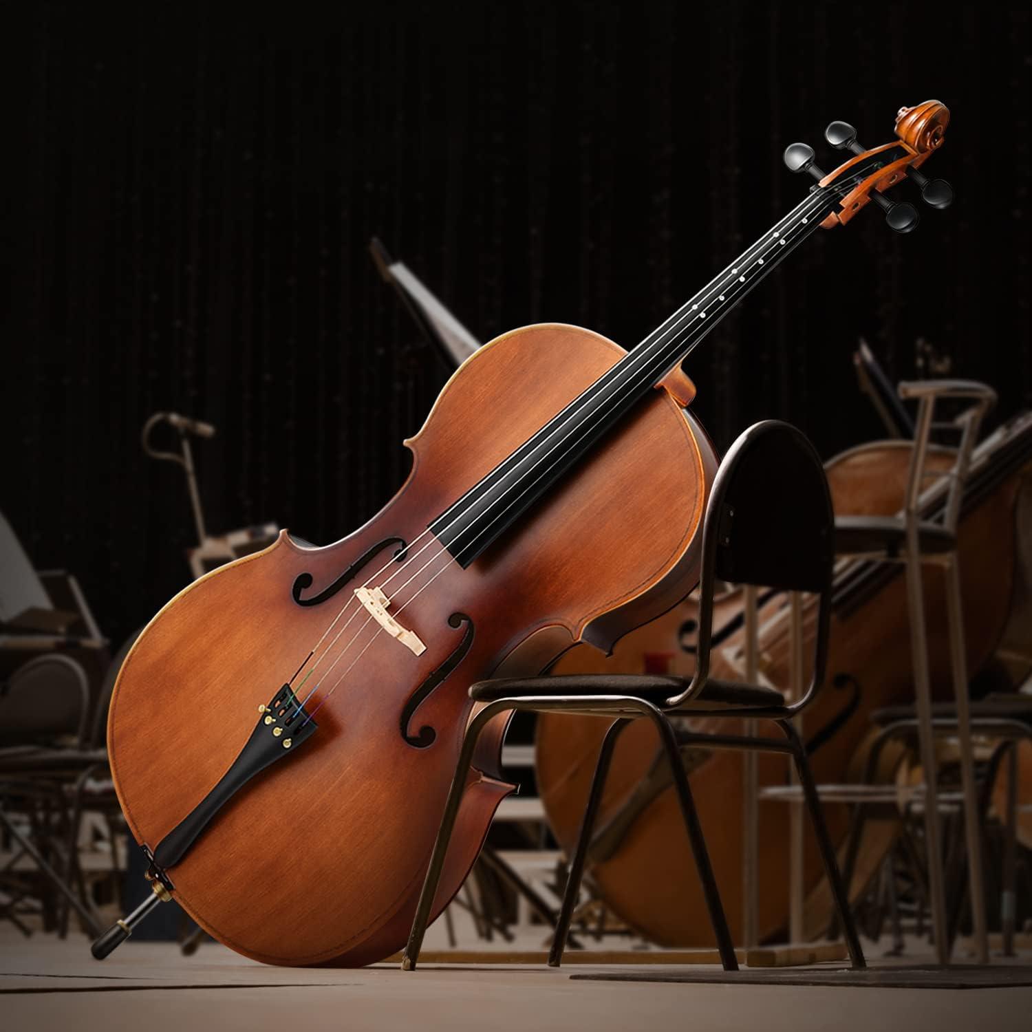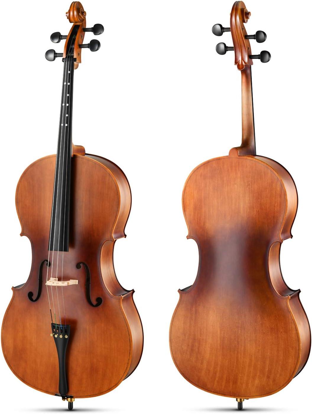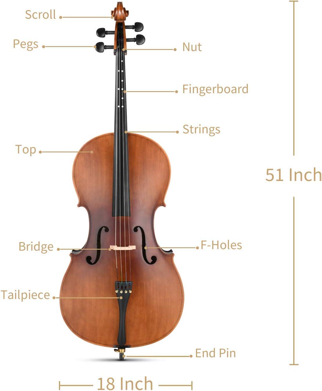 Eastar Acoustic Cello 4/4 for Beginners Adult, Imprinted Finger Guide for Beginners,Cellos Kit with Cello Stand, Case, Bow, Bridge, Rosin, Extra Set of Strings (Full Size,Matt Natural Varnish)