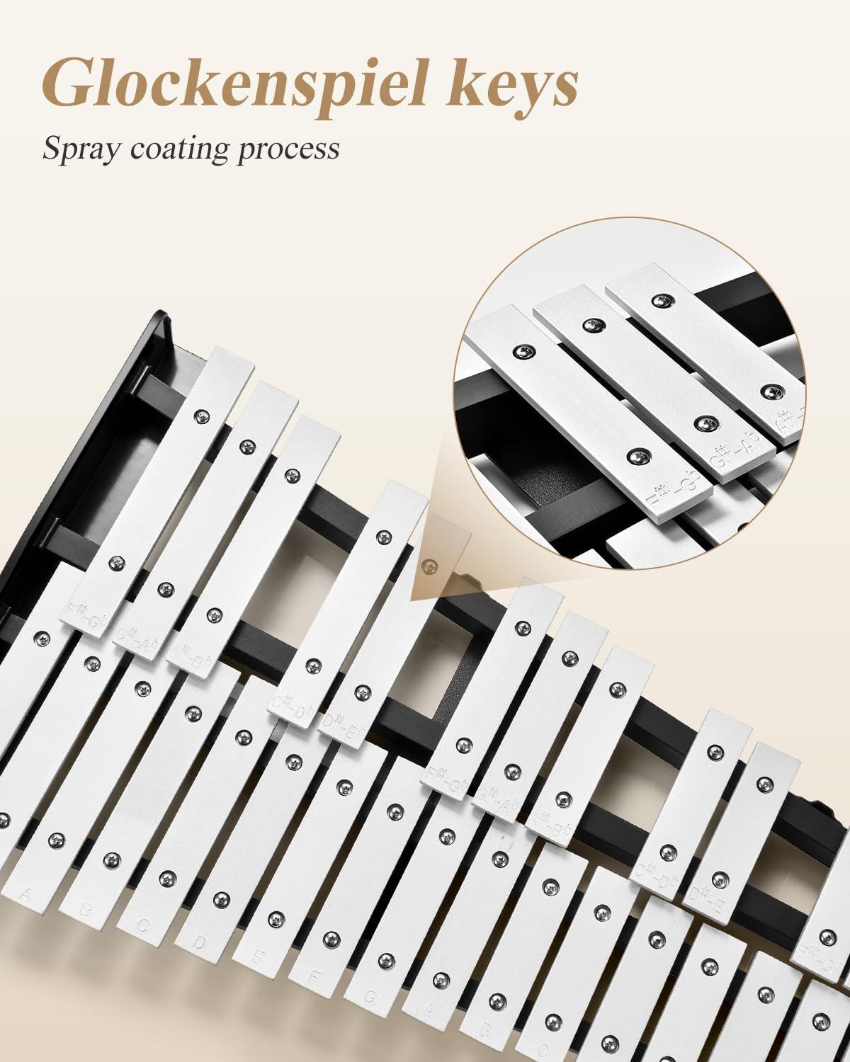 Eastar Advanced 32 Note Glockenspiel Xylophone Bell Kit Beginner Students, Percussion Kit with 8'' Drum Practice Pad, Adjustable Stand, Glockenspiel Stick, Drum Sticks and Carrying Bag(Advanced 32 Note)