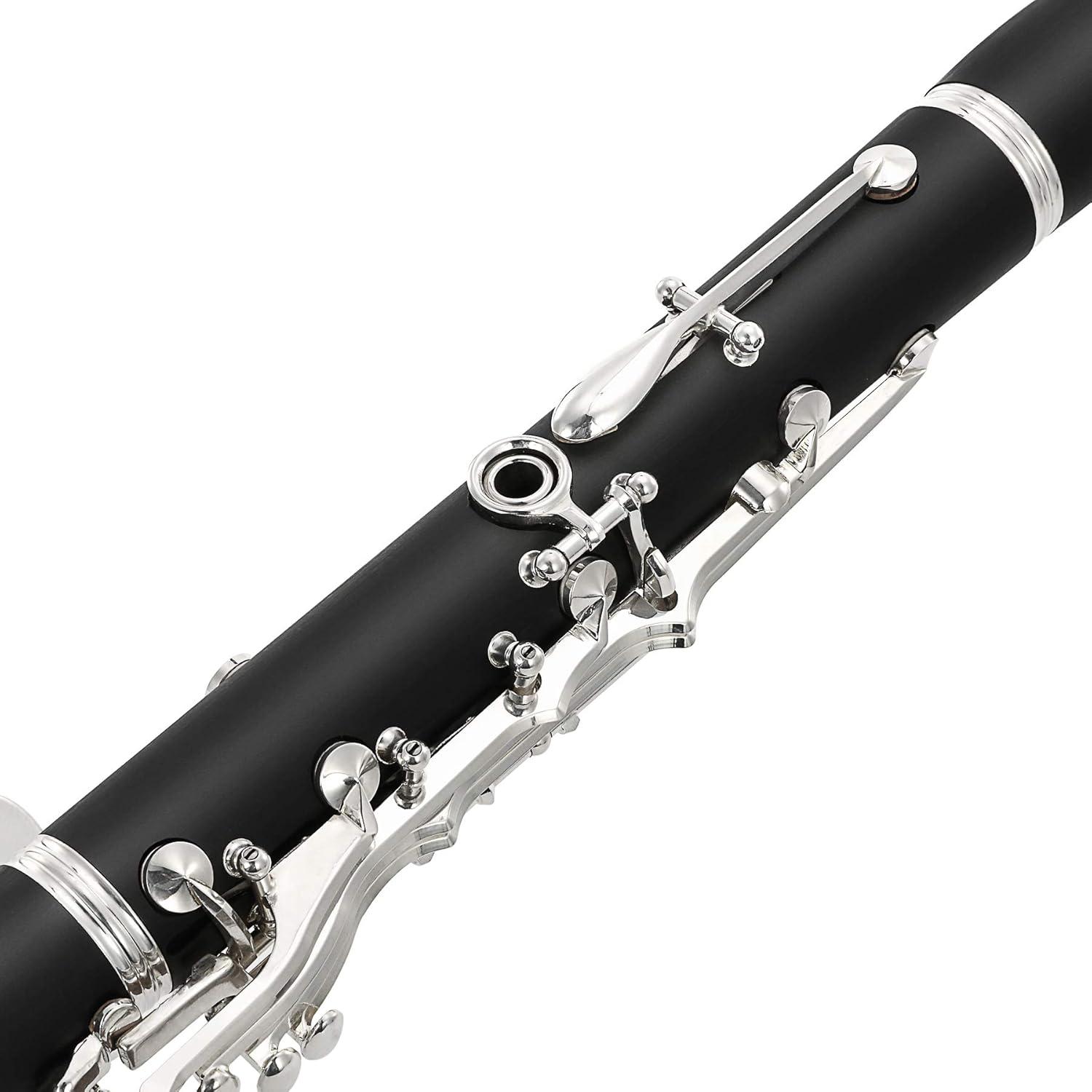 ❤️Wonderful Design – The sleek and sophisticated nickel-plated keys and bakelite body of the clarinet give it an attractive and elegant appearance. The ring-wrapped bell mouth adds a touch of durability to its already impressive design.
