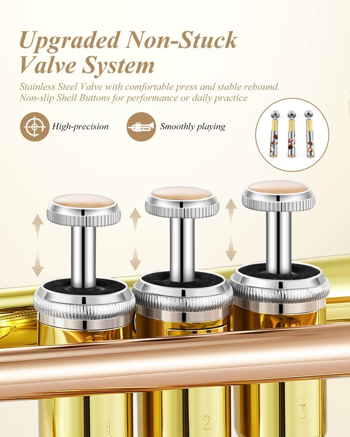 🎺RELIABLE DESIGN — Equipped with a unique valve system (1/100mm mechanical accuracy) designed by Eastar, the trumpet is highly durable during performance without worrying about getting stuck.