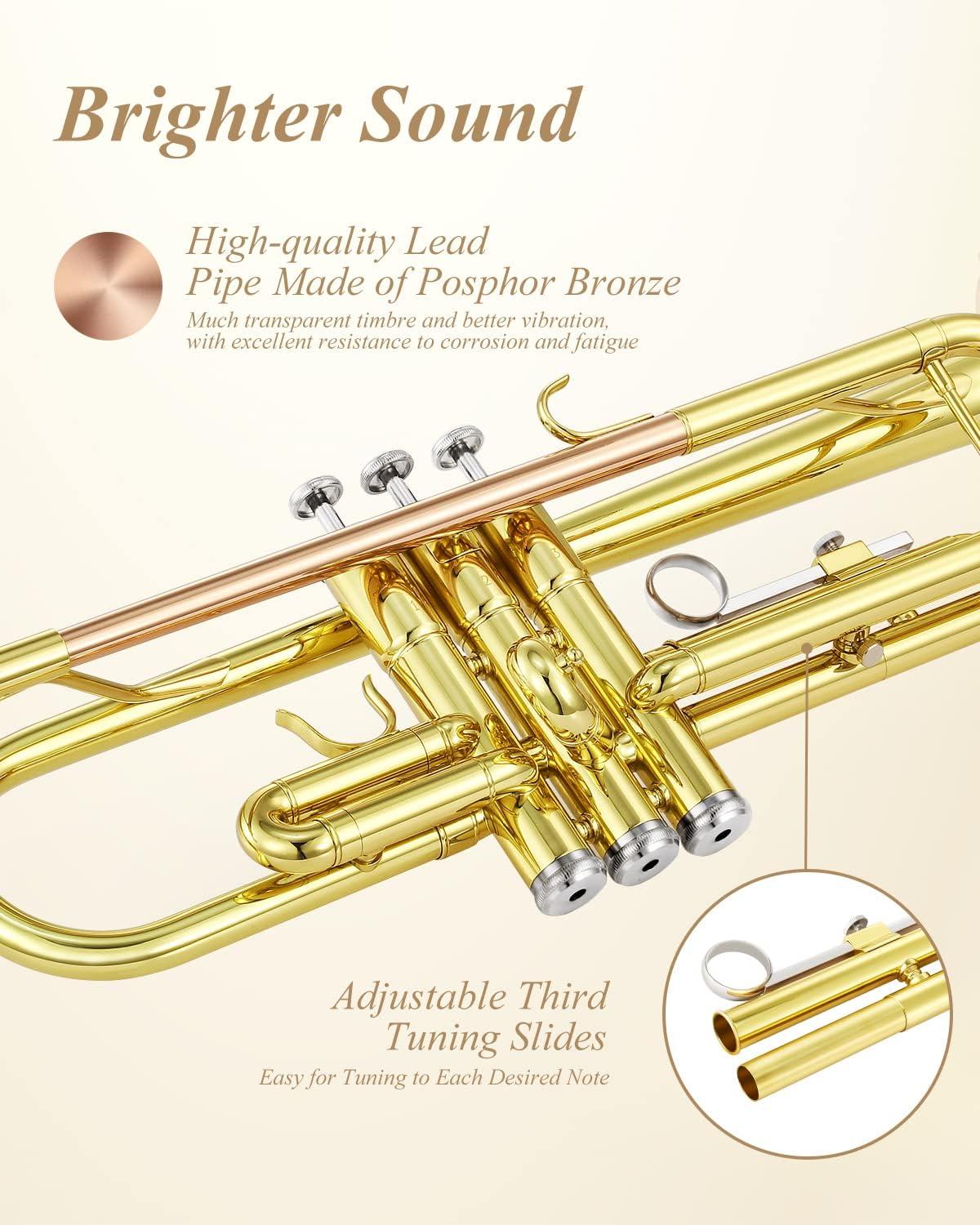 ✨BEAUTIFUL APPEARANCE — Applying nice-looking lacquer plating, dazzling and shiny color, superb reflection, this trumpet must be a decent choice as a gift for those who you care and love.