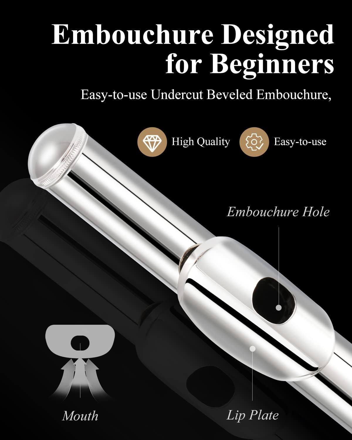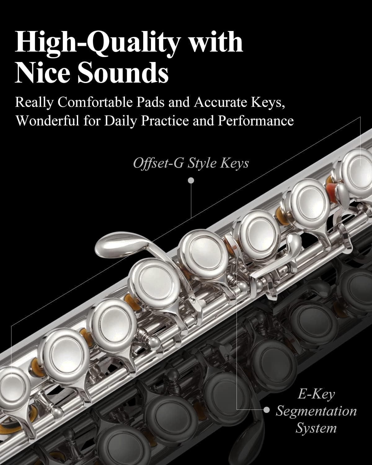 ✨USER-FRIENDLY — The undercut beveled embouchure is easy to blow with high-quality and comfortable double-bladder pads, wonderful for daily practice and performance, really nice for flutes beginners, and students to play.