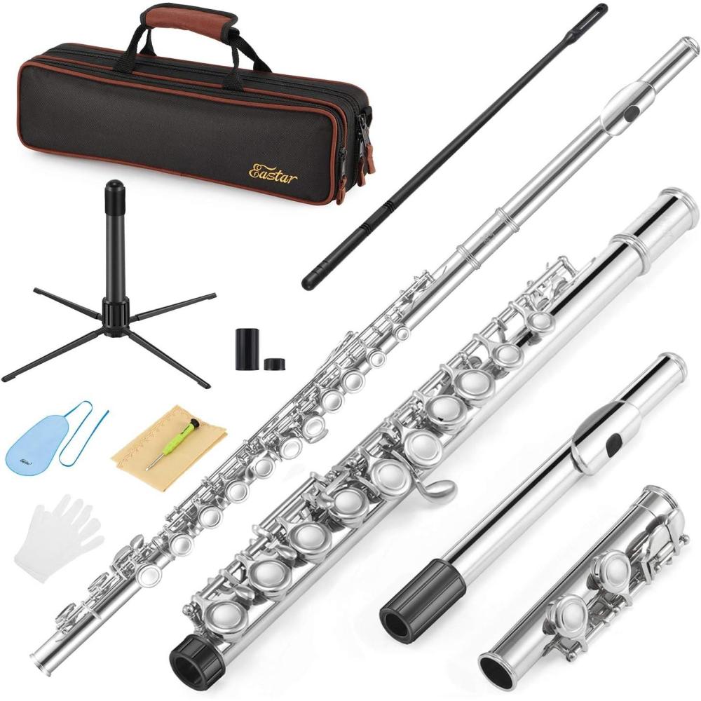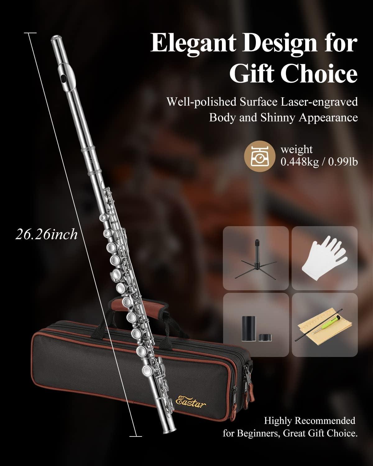 imageEastar Closed Hole 16 Keys Flute for Beginner Kids Student with Cleaning Kit Stand Case Gloves Tuning Rod Nickel EFL1Nickel