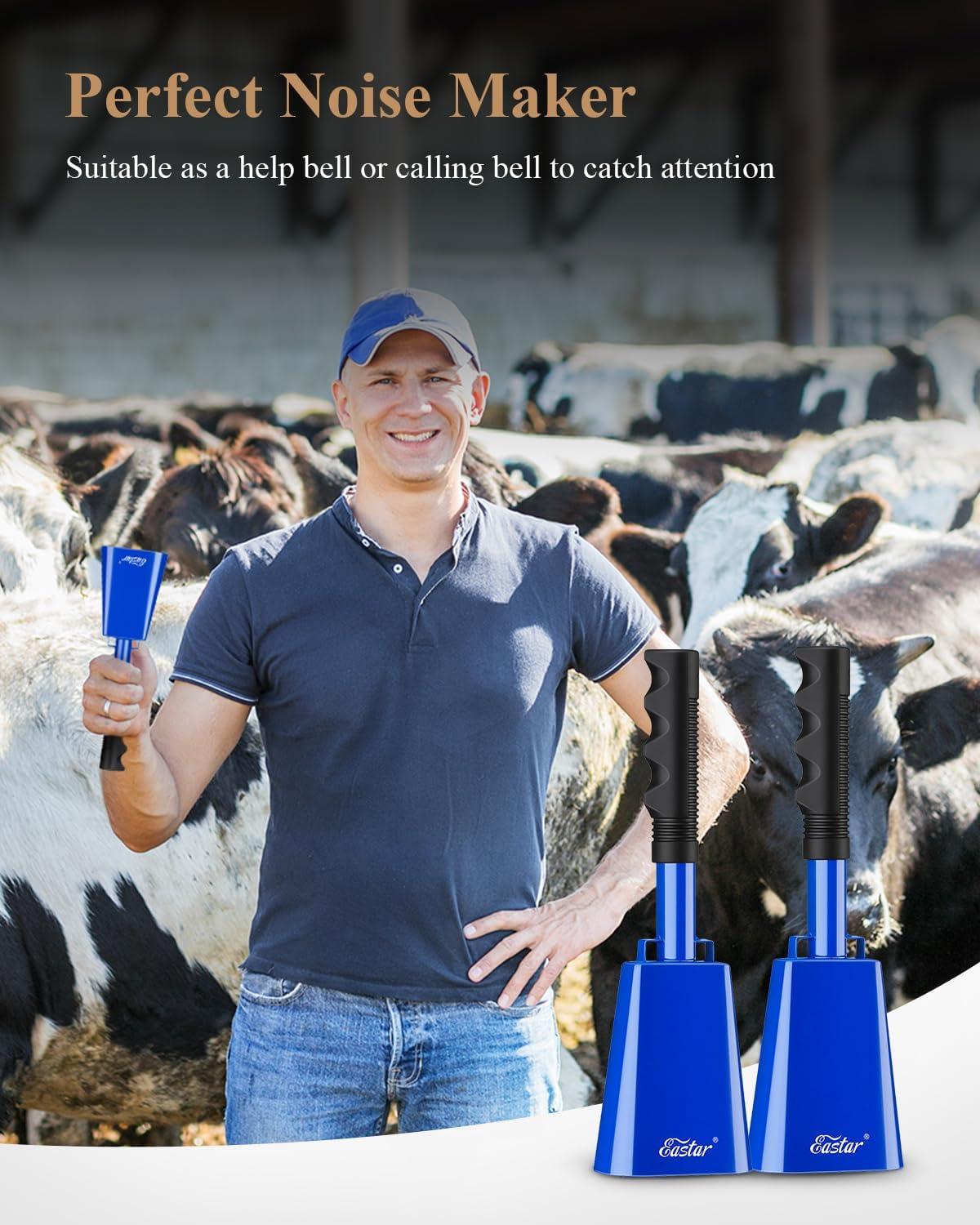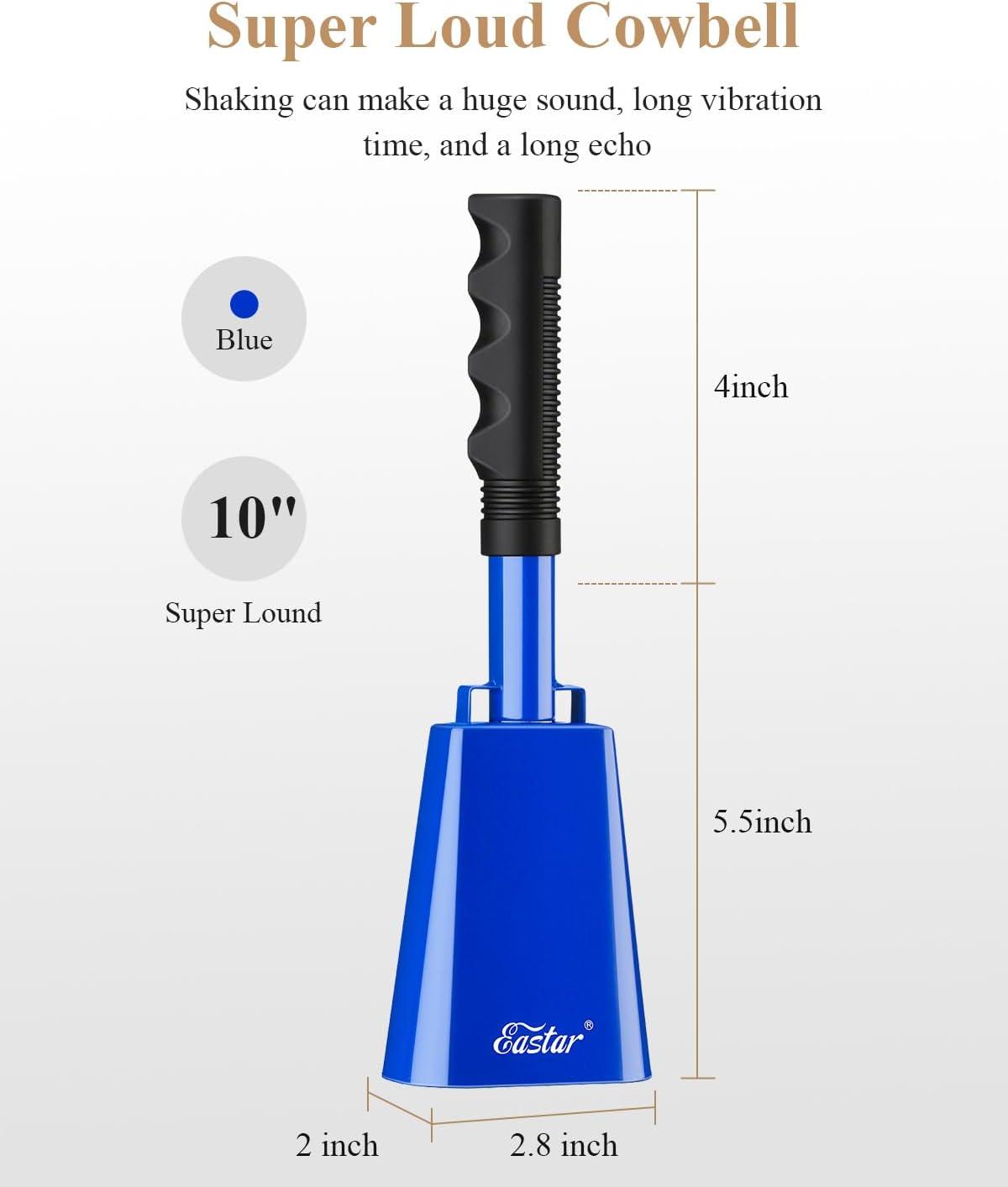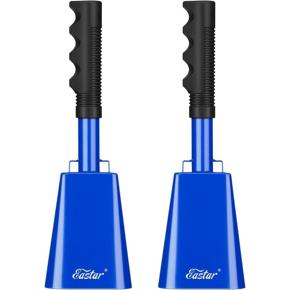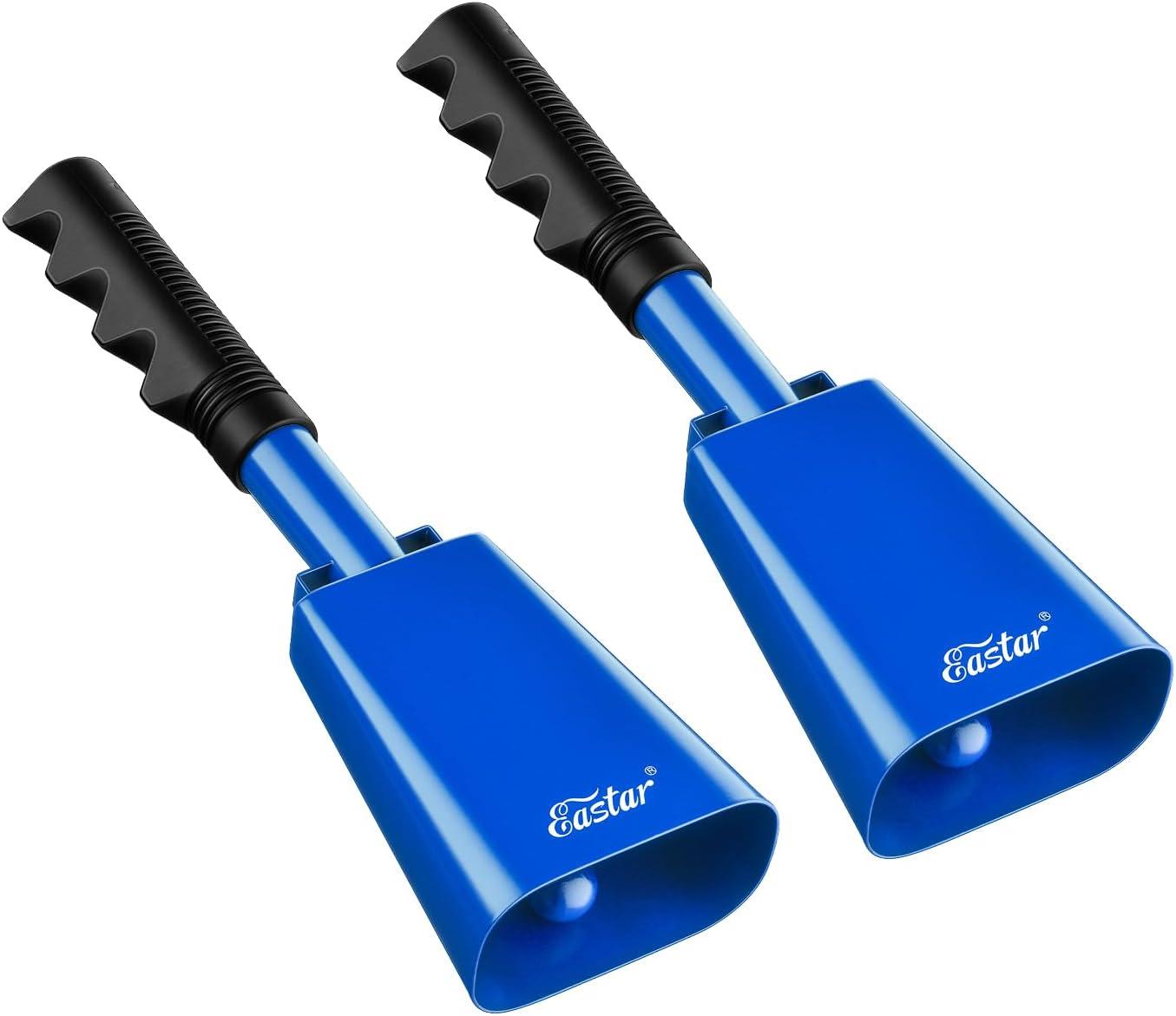 Eastar Cow Bell with Handle, 2 Pack Cowbells for Sporting Events, 10 Inch Cowbells Noise Makers Cheering Bell for Football Games, Stadiums, Halloween Gifts, Black(blue)