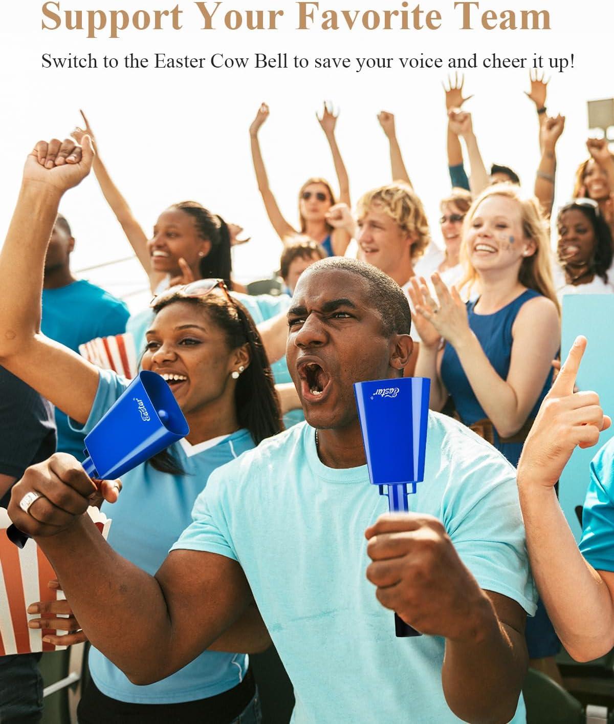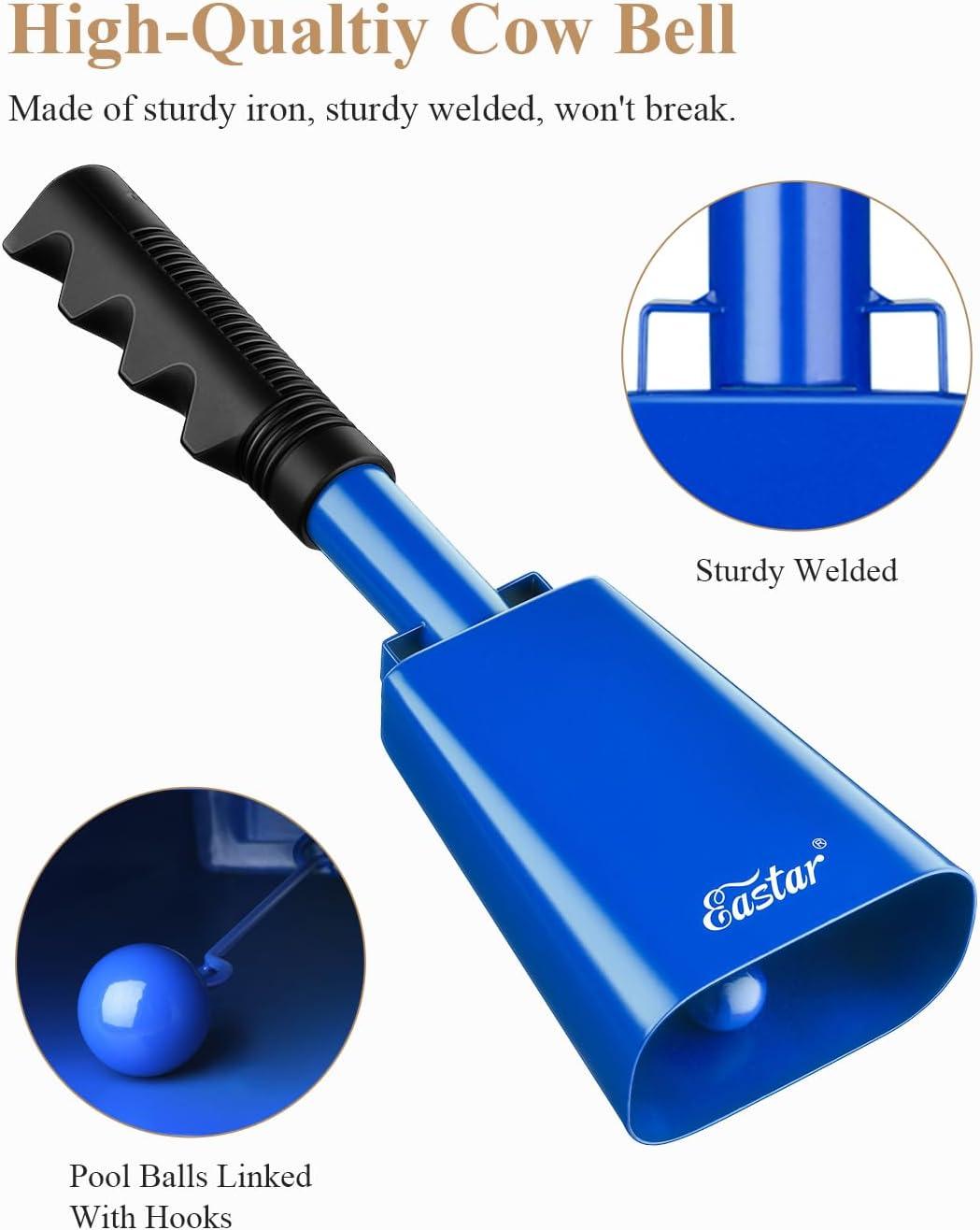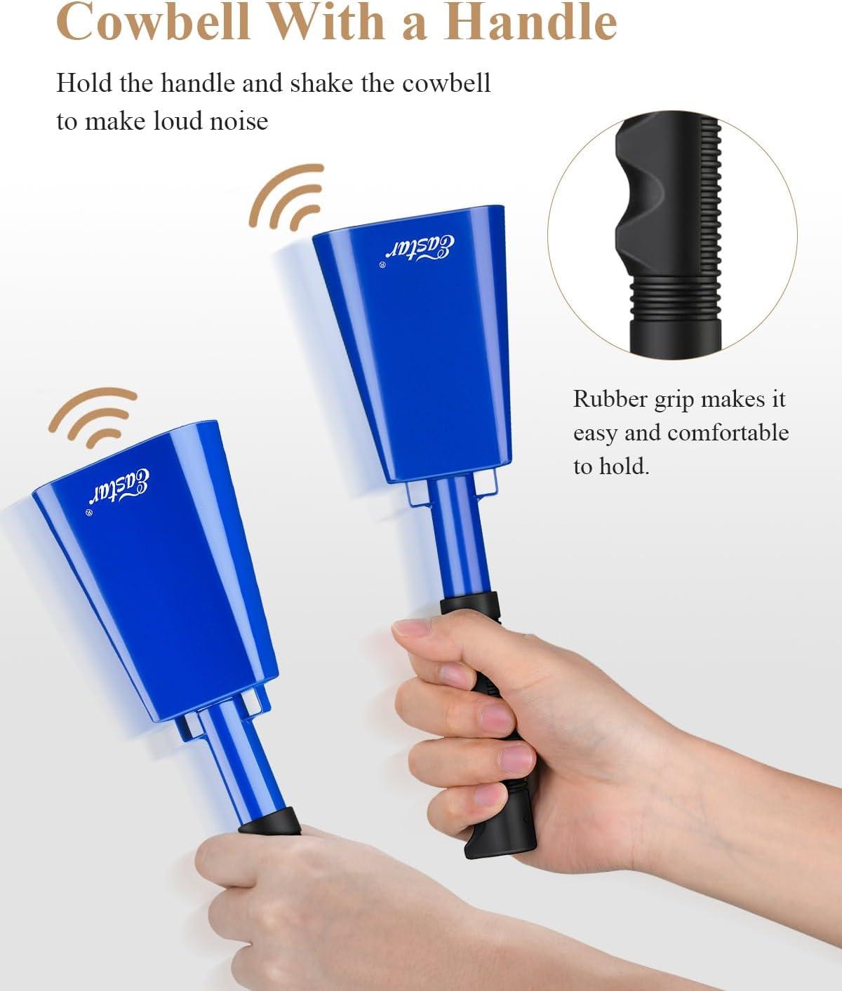 Eastar Cow Bell with Handle, 2 Pack Cowbells for Sporting Events, 10 Inch Cowbells Noise Makers Cheering Bell for Football Games, Stadiums, Halloween Gifts, Black(blue)