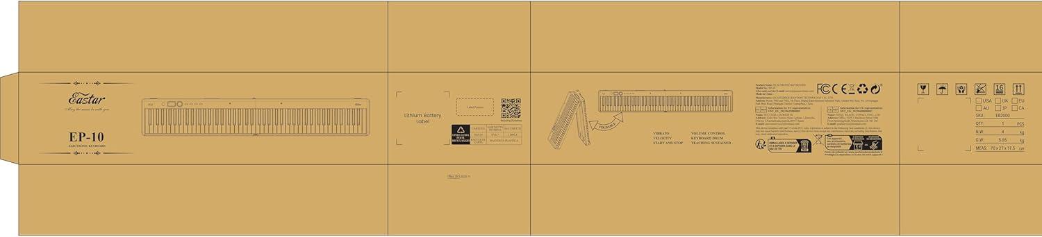 【Ultra-Portable Design】The EP-10 folding piano weighs only 8 pounds, everyone can move it easily. At only 24.8 inches folded up, this piano is lightweight and portable, so it folds up for air travel, fits in the trunk, and is very convenient for everyday storage at home. You can take it anywhere you want at any time.