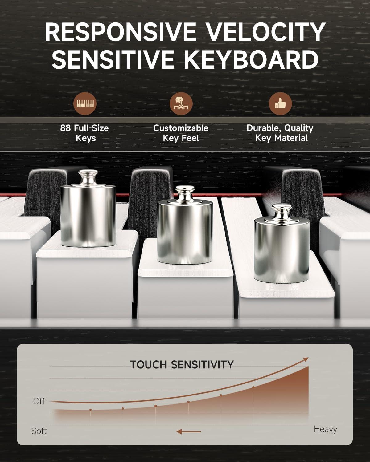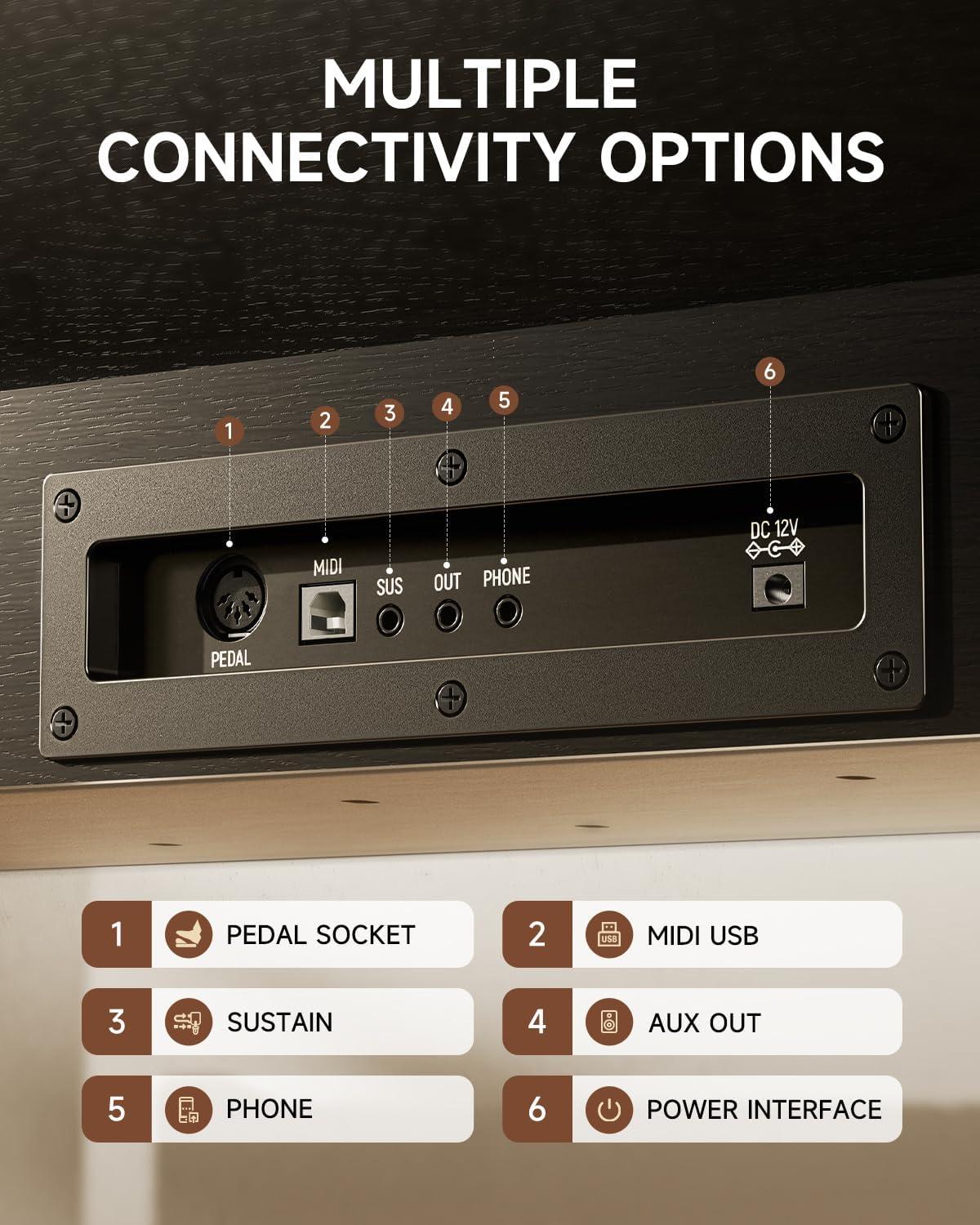 ๐๐ฎ๐ฅ๐ญ๐ข๐ฉ๐ฅ๐ ๐๐จ๐ง๐ง๐๐๐ญ๐ข๐ฏ๐ข๐ญ๐ฒ ๐๐ฉ๐ญ๐ข๐จ๐ง๐ฌ – The 88-key piano keyboard provides versatile connection options, including MIDI USB, pedal, power interface, aux out and headphone jack to meet your various needs. The accompanying headphones allow you to immerse yourself in playing at home, unleashing your creative potential