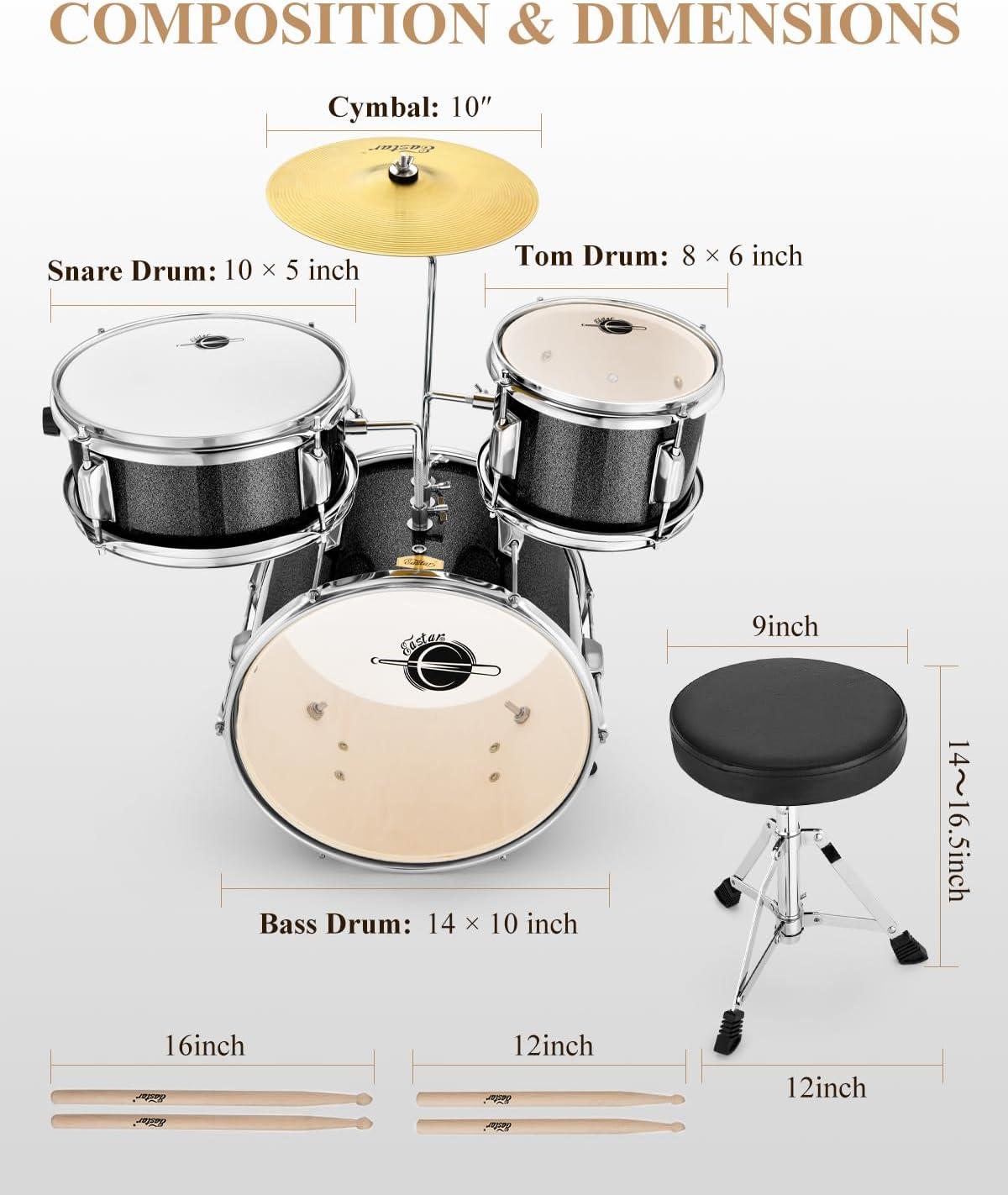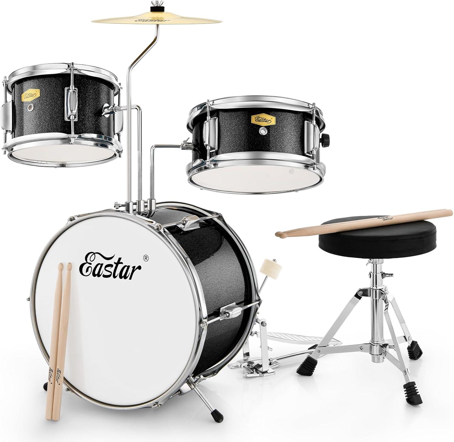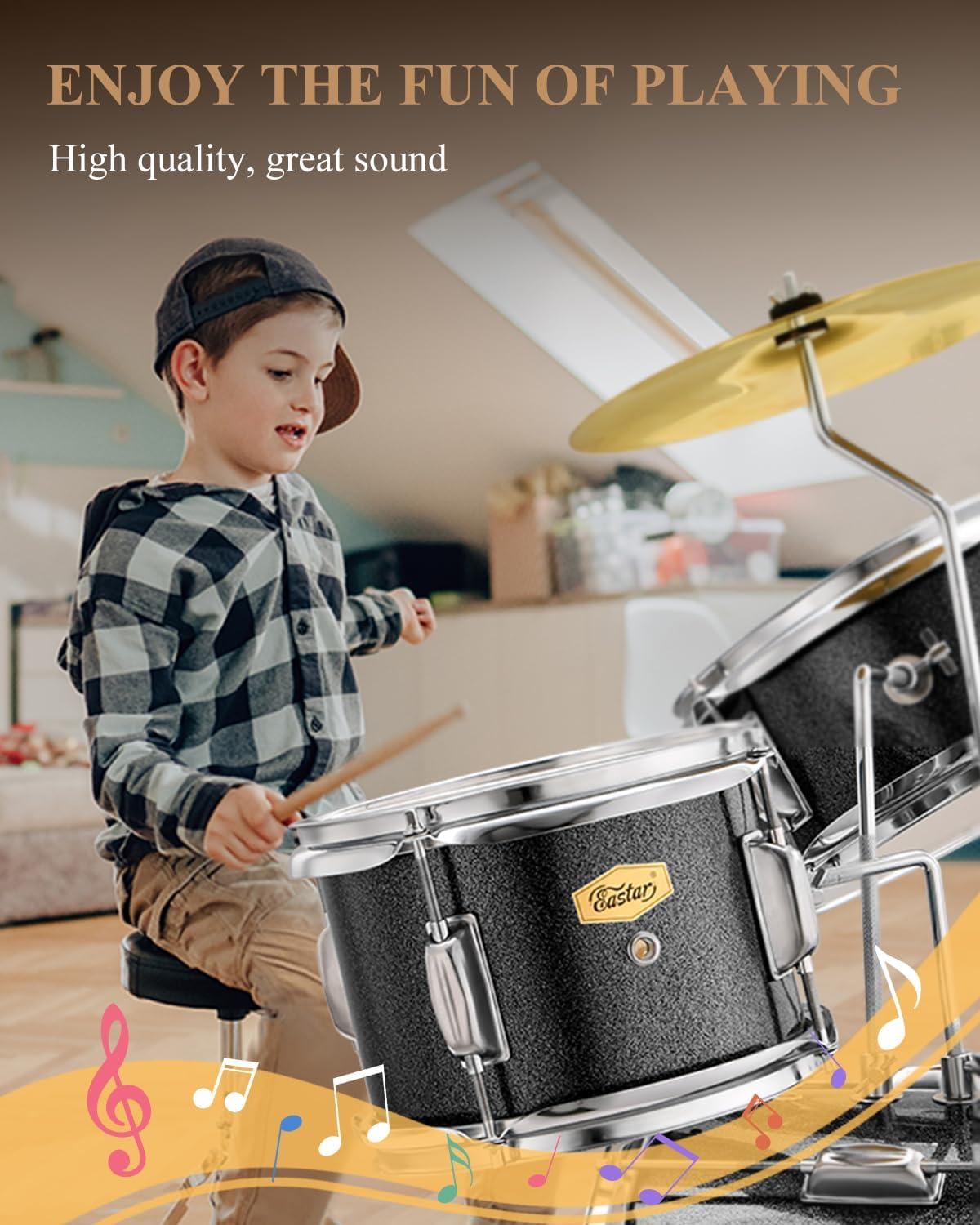 Eastar Kids Drum Set 14‘’ 3-Piece,Beginners, Drum Kit with Throne, Cymbal, Pedal & Two Drumsticks, Christmas Gift For Child age 3-9 Years (Black)