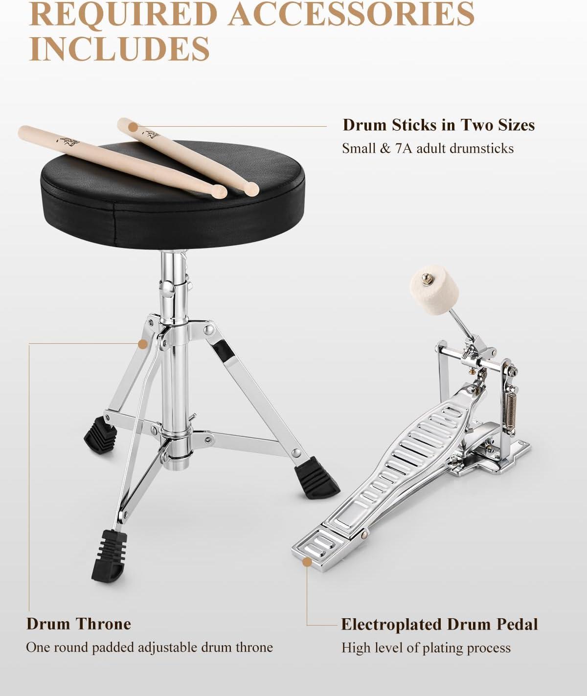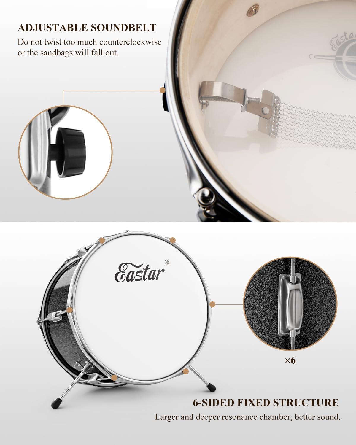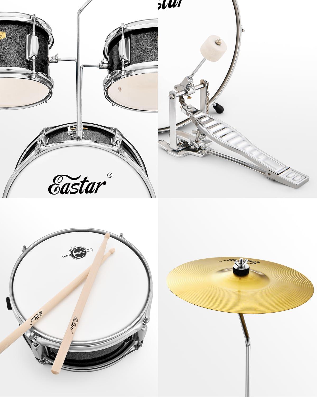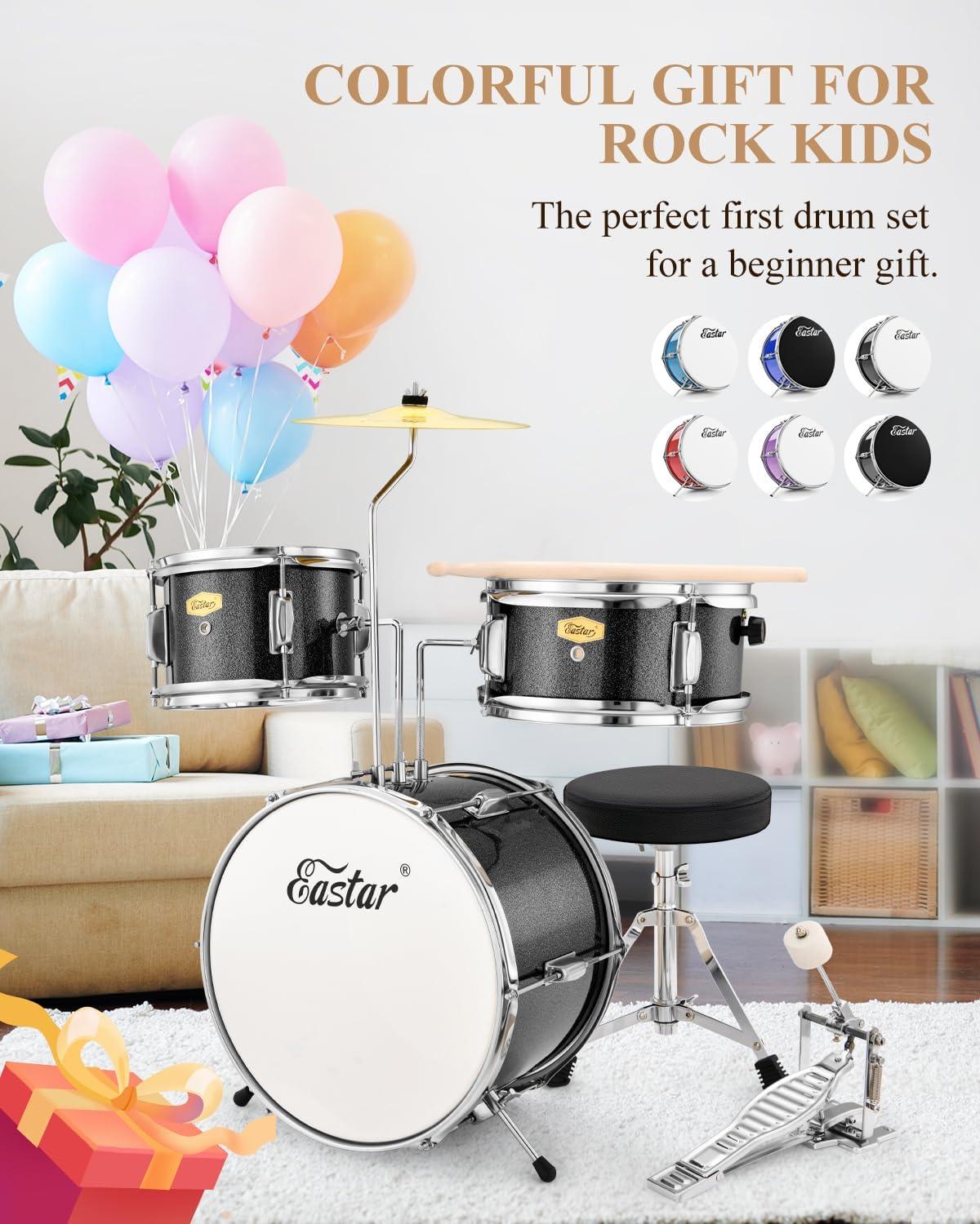 Eastar Kids Drum Set 14‘’ 3-Piece,Beginners, Drum Kit with Throne, Cymbal, Pedal & Two Drumsticks, Christmas Gift For Child age 3-9 Years (Black)