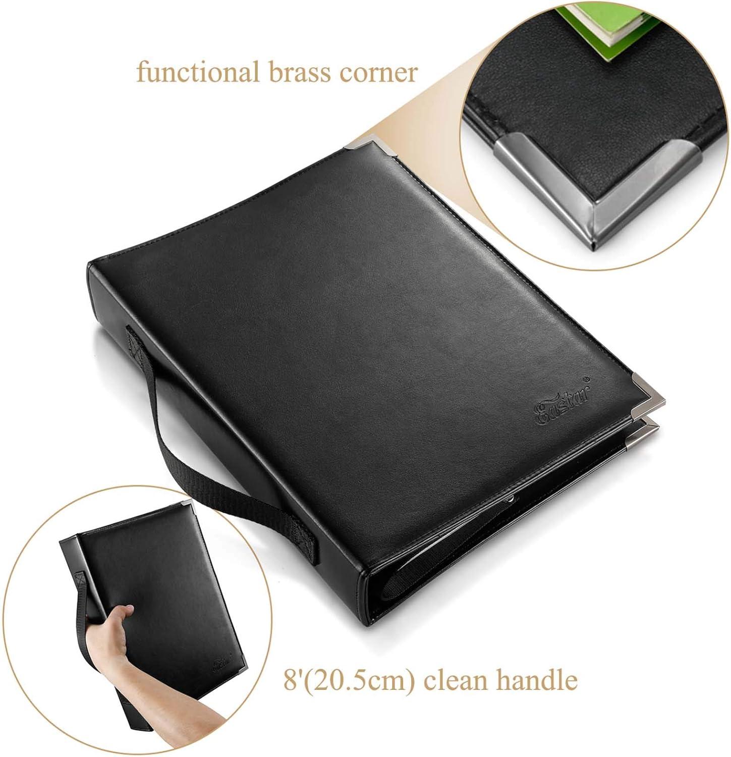 High-end Concert choir folder: High-quality PU Leather makes it waterproof, solid and durable. Size: 13.5″(35Cm) x 10.5″(27Cm) x 2.2″(5.5cm). Functional brass corner for protection; papers under the standards of A4 and letter size can fit in easily, maximum to put in 200 pages loose-leaf, perfect chorus folder