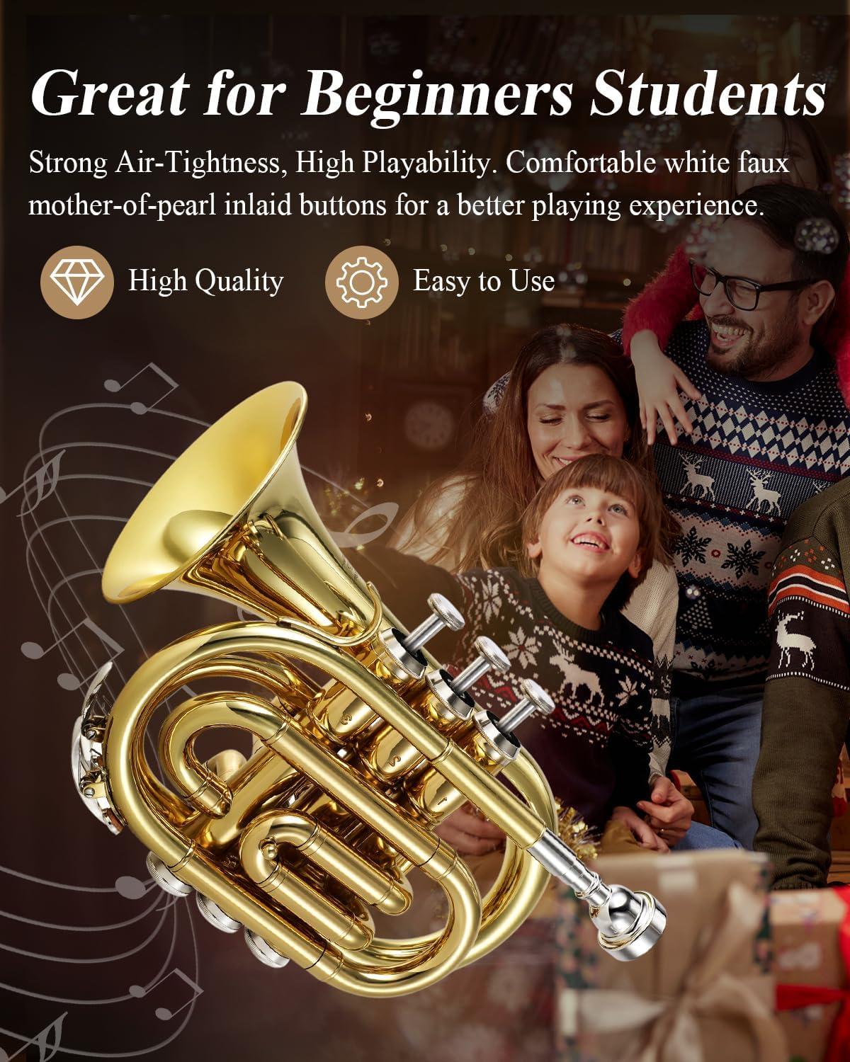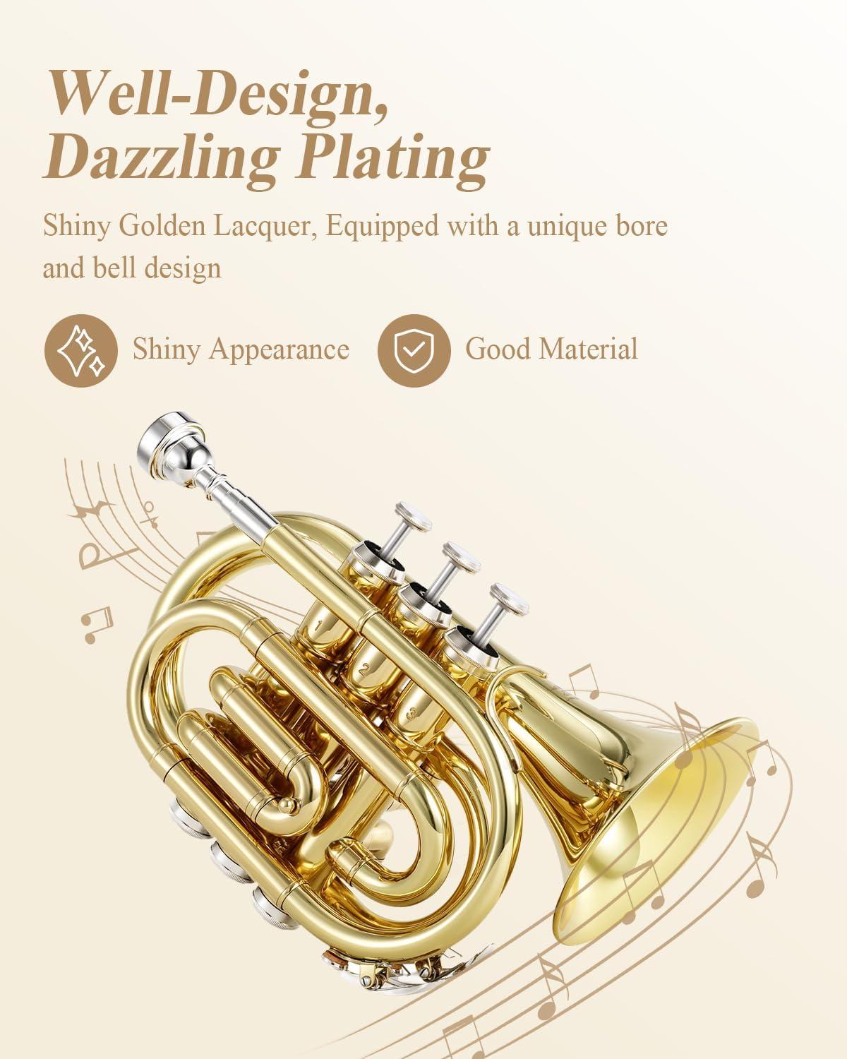 ✨BEAUTIFUL APPEARANCE — Applying nice-looking lacquer plating, dazzling and shiny color, and superb reflection, this pocket trumpet can be a decent choice as a gift for those who you care about and love.