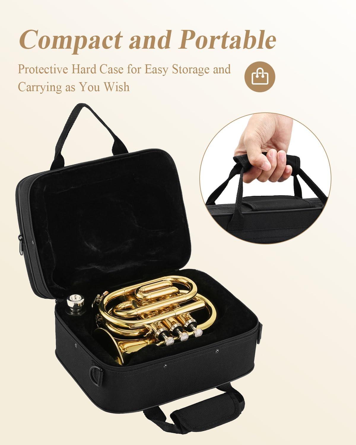 ❤️AMAZING TIMBRE — The sound and timbre of Eastar Bb pocket trumpet are pure and bright, abundant and powerful, with excellent vibration. Also a user-friendly brass instrument for beginners and students.