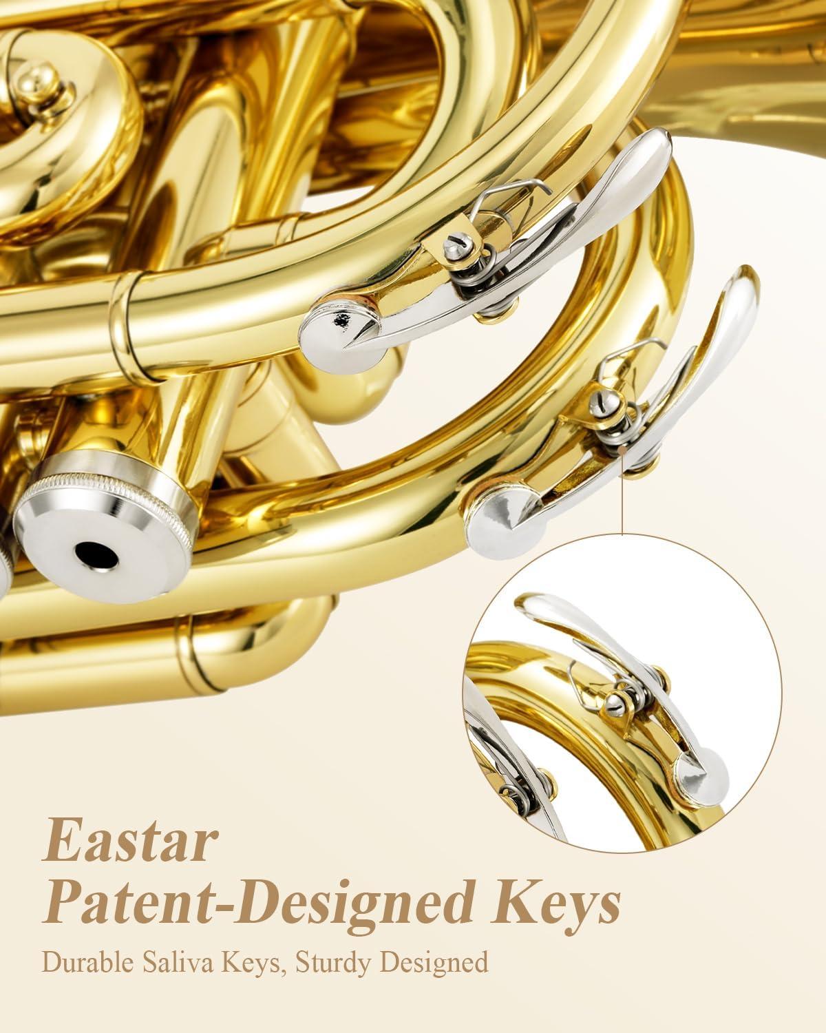 🎁COMES WITH EVERYTHING NEEDED — The package includes Eastar ETR-330 Golden Pocket Trumpet, white gloves, cloth, cleaning suit, 7C mouthpiece, and hard case. 12-month product warranty backed by our awesome customer support team ready to help.