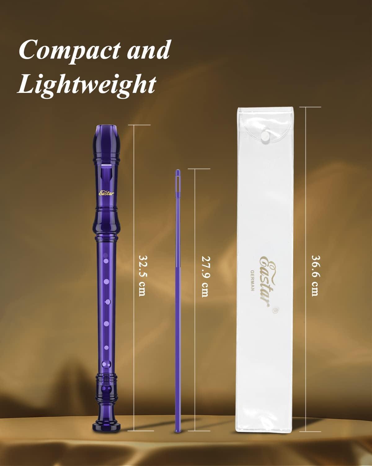 Eastar Soprano Recorder Instrument for Kids Beginner, German Fingering C Key 3 Piece with Cleaning Kit, Thumb Rest, Cotton Bag, Fingering Chart, ERS-21GSB, Sky Blue, School-Approved(Purple)