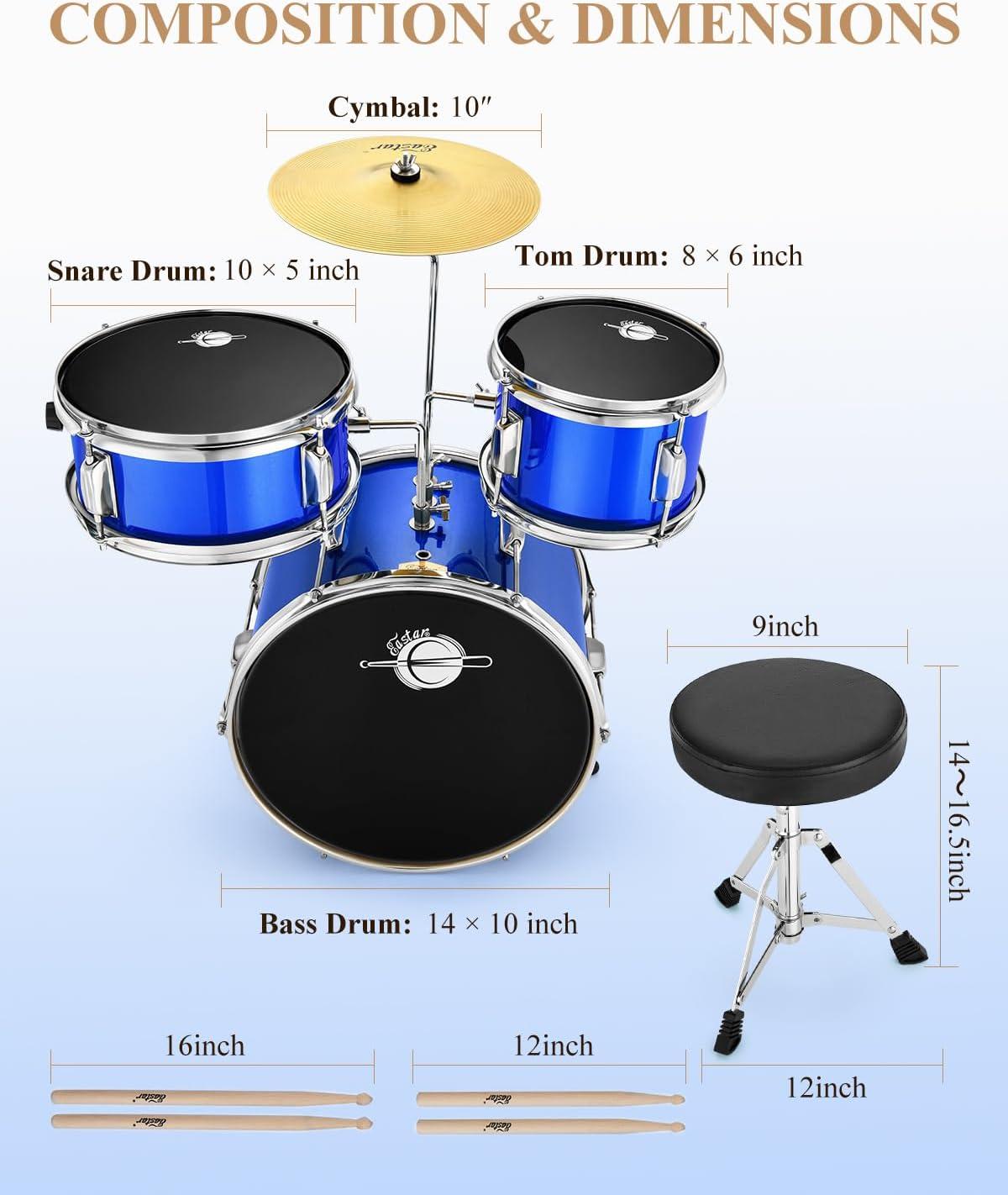 DRUM KIT: Eastar drum set is perfec as beginners in learning and practicing drum, including a 14″ x 10″ Bass drum, a 8″ x 6″ mounted tom drum, a 10″ x 5″ mounted snare drum with internal adjustable soundbelt, and a 10″ cymbal with cymbal arm, providing everything required to get a great start