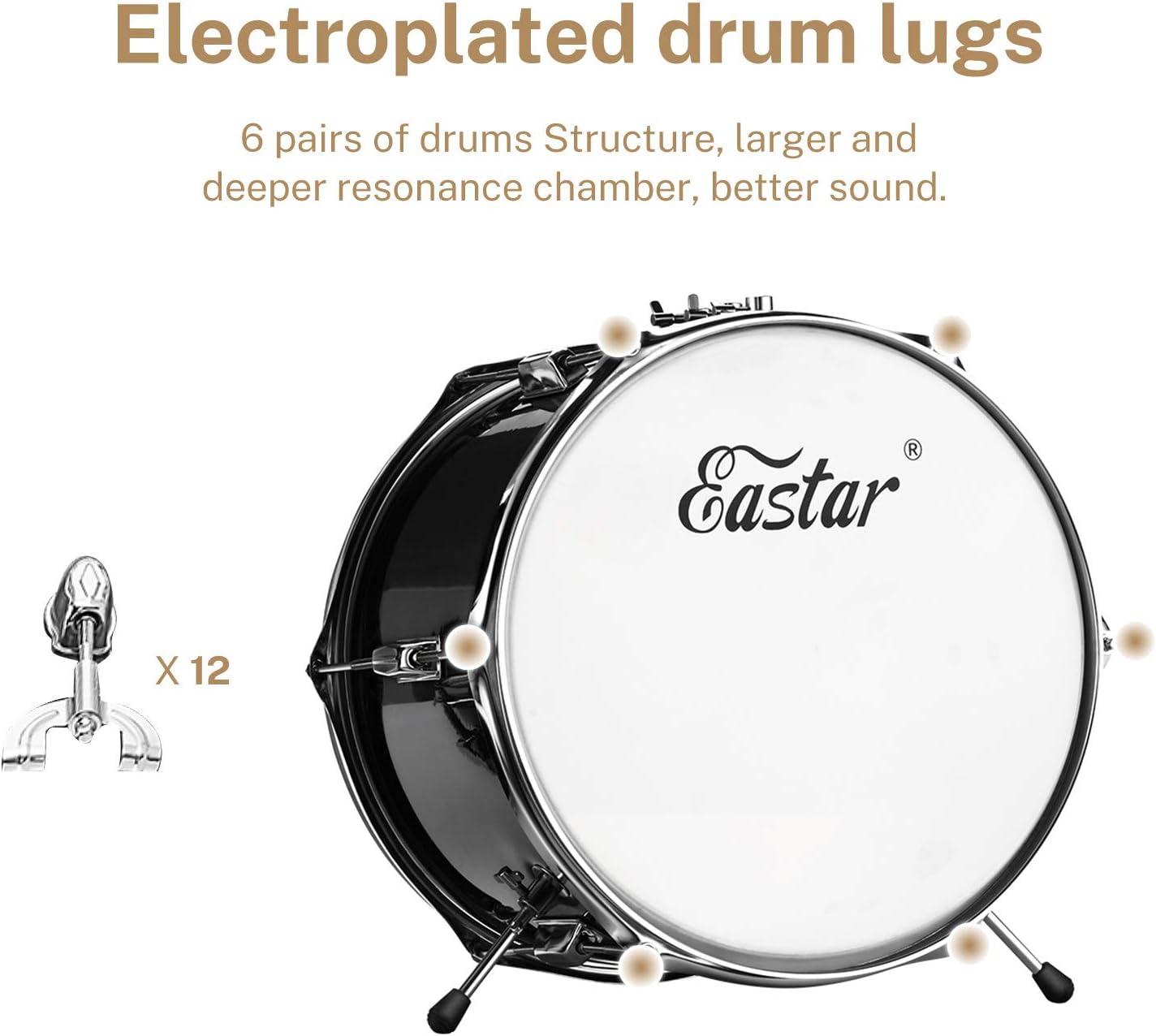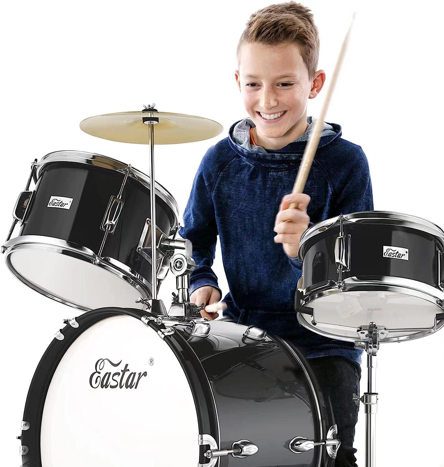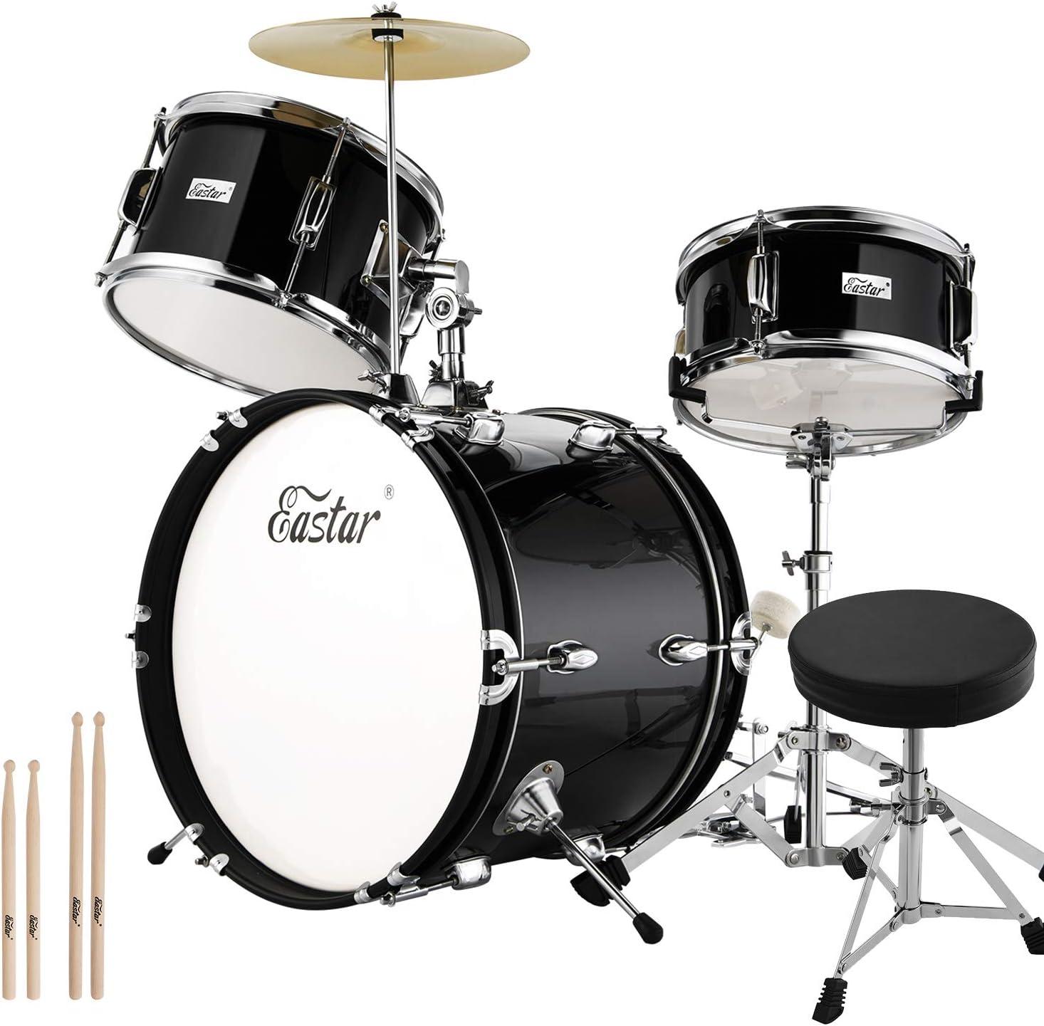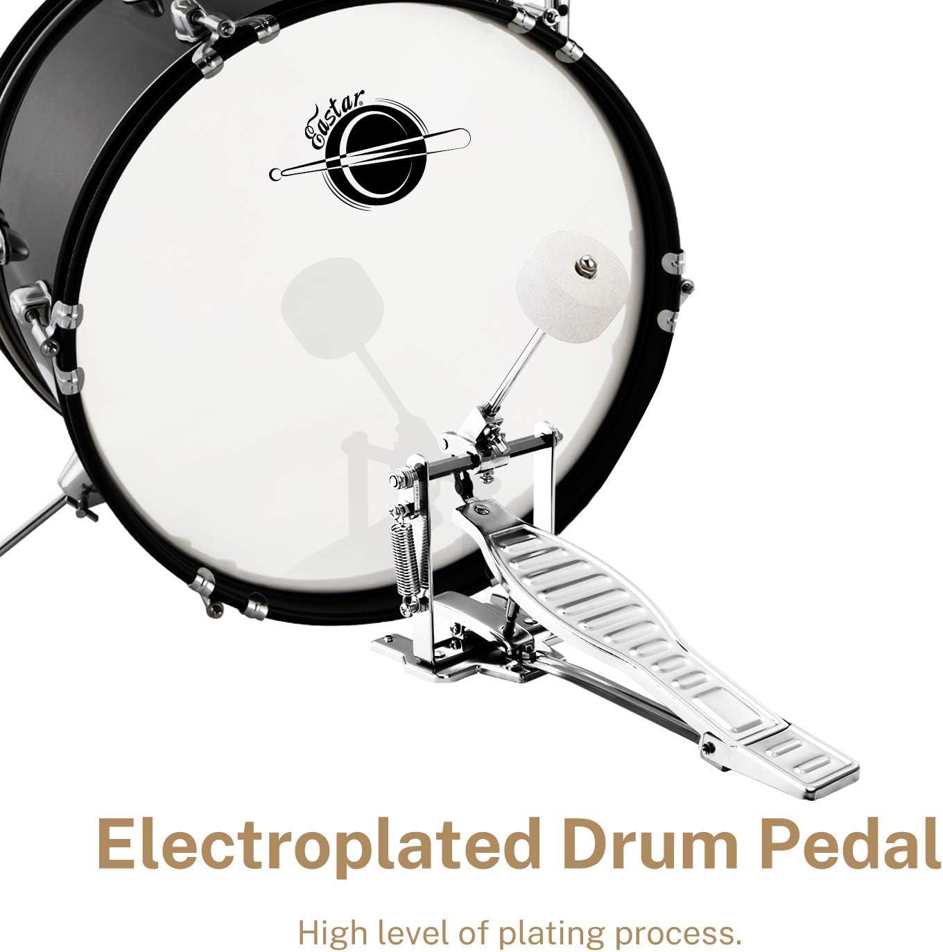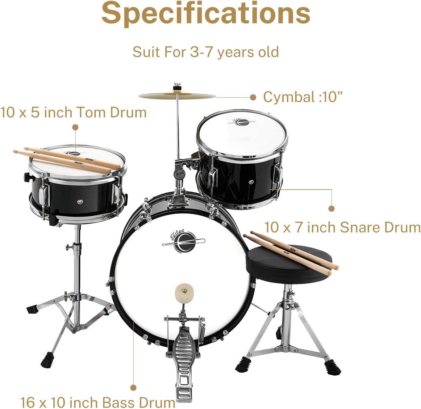 Kids Drum Set – 16 inch 3-Piece Junior Drum Kit for Starter Beginners Ages 3-8, Including Throne, Cymbal, Pedal & Drumsticks, Mirror Black (EDS-285B)