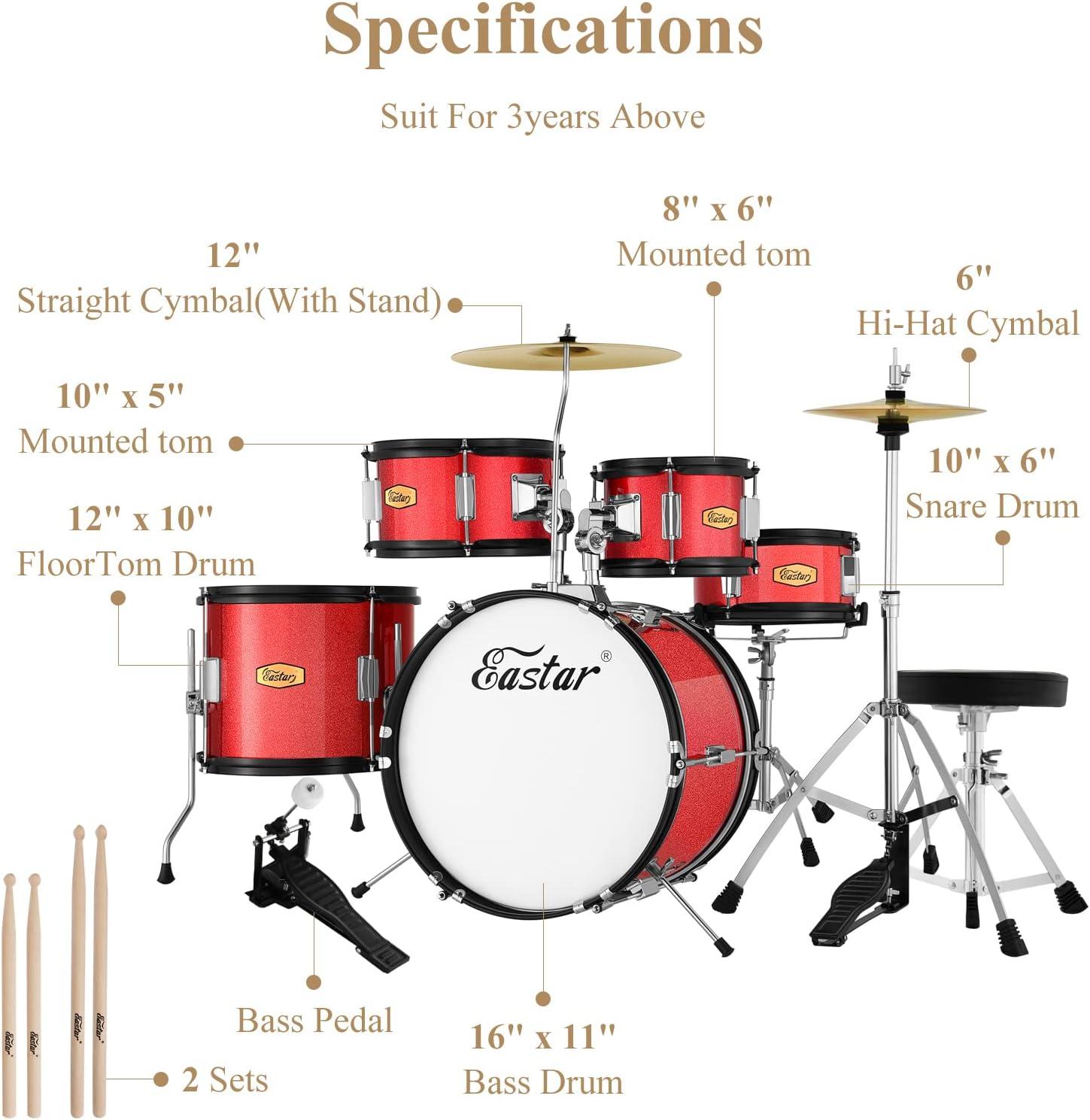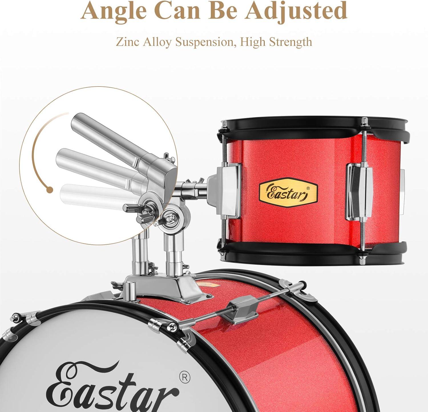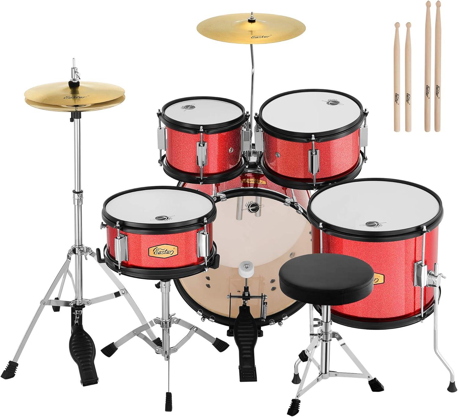 Kids Drum Set - Eastar 16 inch 5-Piece Junior Drum Kit for Beginners Teenagers with Adjustable Throne and Cymbal, Pedal & Drumsticks, Metallic Red (EDS-350RD)