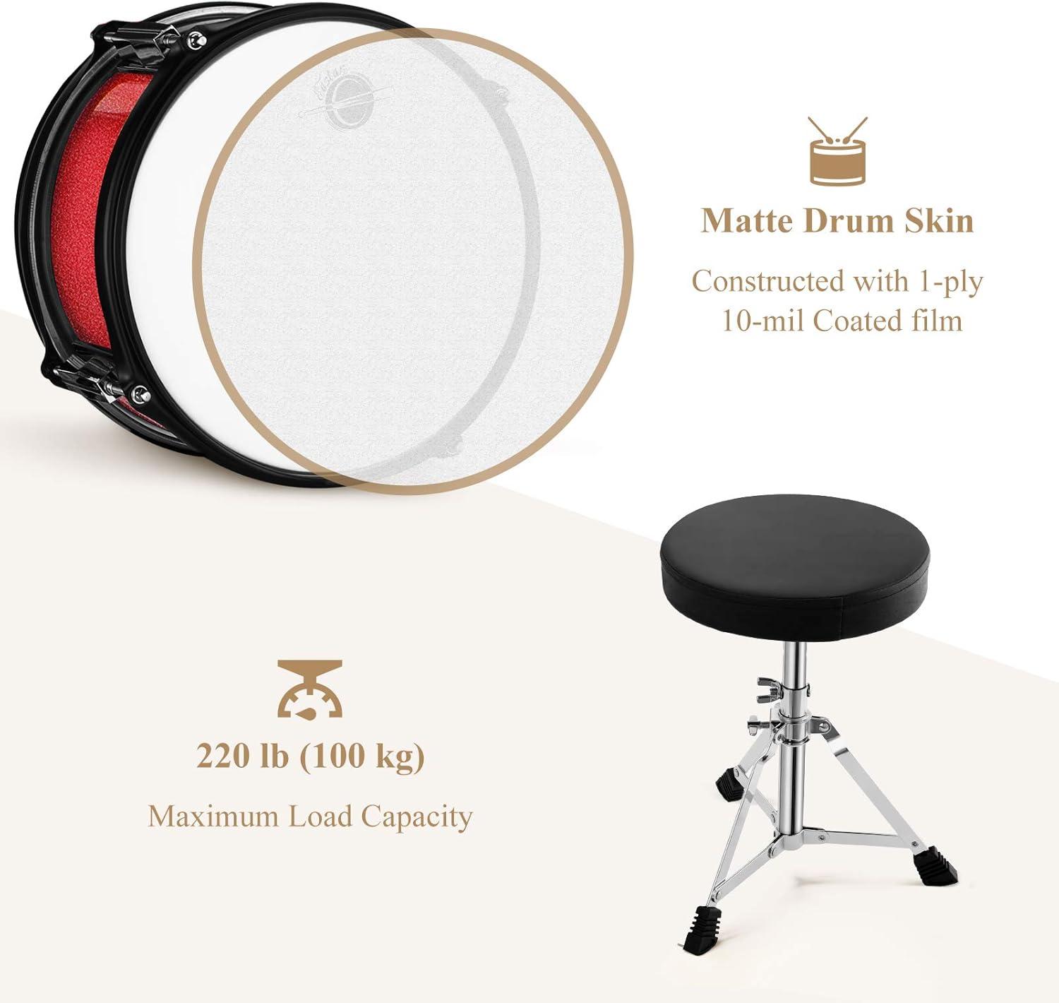 Kids Drum Set – Eastar 16 inch 5-Piece Junior Drum Kit for Beginners Teenagers with Adjustable Throne and Cymbal, Pedal & Drumsticks, Metallic Red (EDS-350RD)