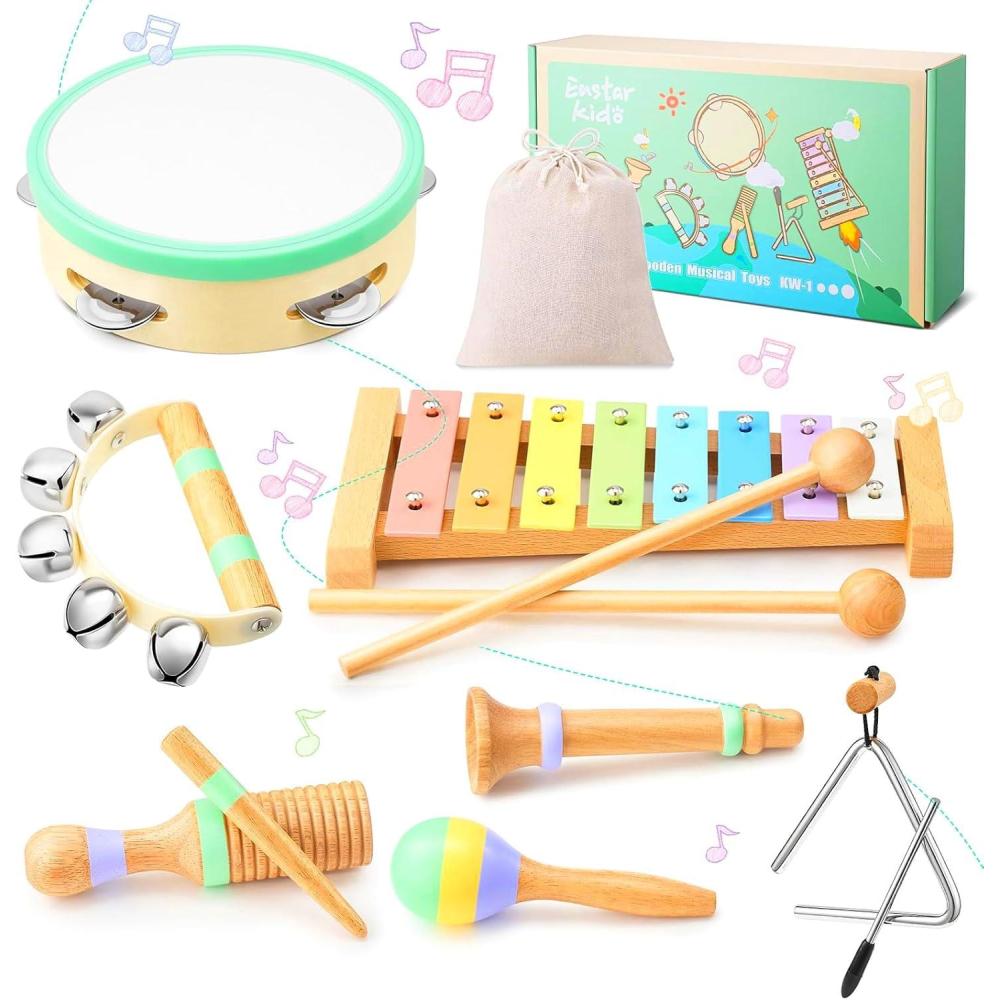 Montessori Musical Instruments for Toddlers, Wooden Musical Toys for Kids 3+, Eastar Kido Percussion Instruments Set for Boys Girls, Preschool Educational Toys with Storage Bag Christmas Birthday KW-1